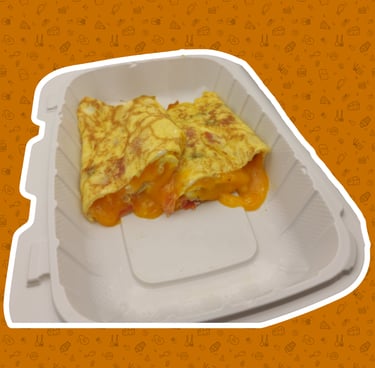 Diced ham, bacon bits, sauteed tomato, onions, jalapenos, and bell peppers, along with shredded Cheddar and Monterey Jack cheese.